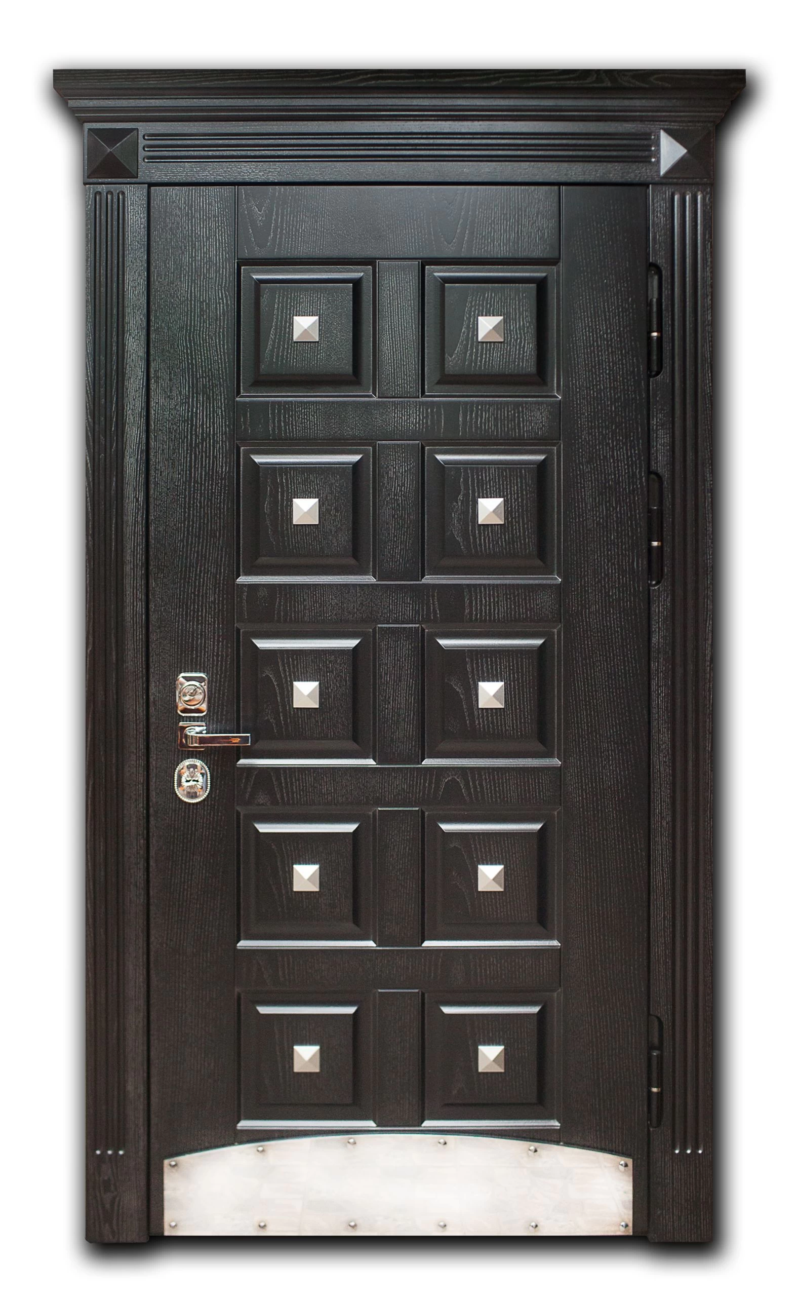 В основе конструкции элитных дверей в Нее - стальной лист толщиной не менее 2.0 мм, дверное полотно укреплено ребрами жёсткости (могут быть горизонтальными, вертикальными, комбинированными). При желании можно сделать дверь из стали 3.0 и даже 4.0 мм. Но тут есть ряд особенностей. Полотно и каркас такой двери невозможно сделать из гнутого профиля, конструкция только сварная. Ну и надо помнить, что двери из толстого металла очень тяжёлые, а следовательно, травмоопасные.