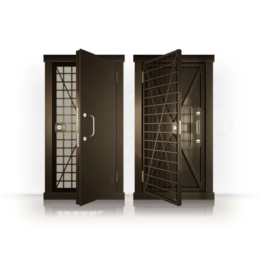 Металлические двери КХО и КХН представляют собой входные блоки, обладающие высоким уровнем взломостойкости и состоят из трех основных элементов: усиленного каркаса, сплошного металлического полотна и решетчатой двери. Дверной блок изготавливается из стального уголка 100*100 мм. Места крепления блока к стене цементируются и закрываются стальными наличниками шириной 40 мм. Крепеж заходит вглубь стены на 80 мм. В конструкции внешней створки монтируются ребра жесткости, для обшивки используется сталь толщиной не менее 3 мм. Внутренняя решетка изготавливается из прутка диаметром 16 мм. Размер ячеек решетки должен составлять не более 15 на 15 см. В точках пересечения прутья надежно приваривают друг к другу. В КХО и КХН необходимо поддерживать определенную температуру и влажность. Для этого внутреннее пространство глухой двери заполняется теплоизоляционным материалом, а по периметру двери приклеивается уплотнитель. Такие двери оборудуются замками с повышенным уровнем взломостойкости. Специализированные двери КХО и КХН в Нее могут быть оснащены сигнализацией, в конструкции могут быть проушины для навесного замка и элементами для опечатывания. Если идет речь о двери в комнату хранения оружия, в створке оборудуется окно для выдачи оружия и спец. средств, которое накрывается стальной дверцей.